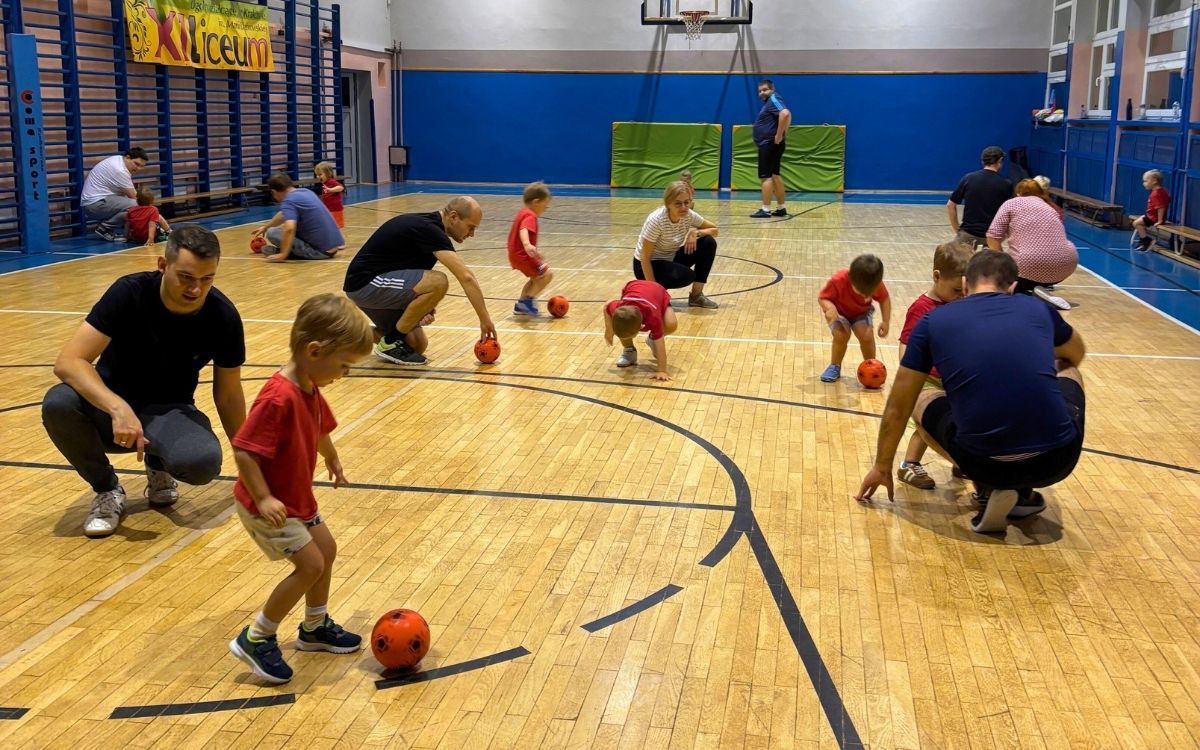 Po rozgrzewce ruszyliśmy do emocjonujących wyścigów w parach do materacy, które rozwijały szybkość i koordynację. Na zakończenie – długi tunel, akrobatyczne wyzwania i wspólne ćwiczenia z rodzicami. To właśnie takie chwile budują zaufanie, poczucie bezpieczeństwa i więź między dorosłymi a dziećmi.