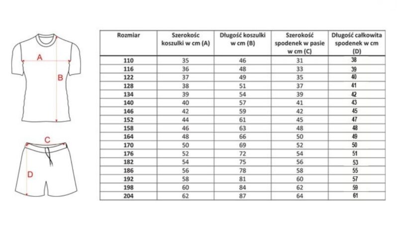 Pełna tabela rozmiarów dostępna jest poniżej, aby każdy mógł dobrać odpowiednią koszulkę.