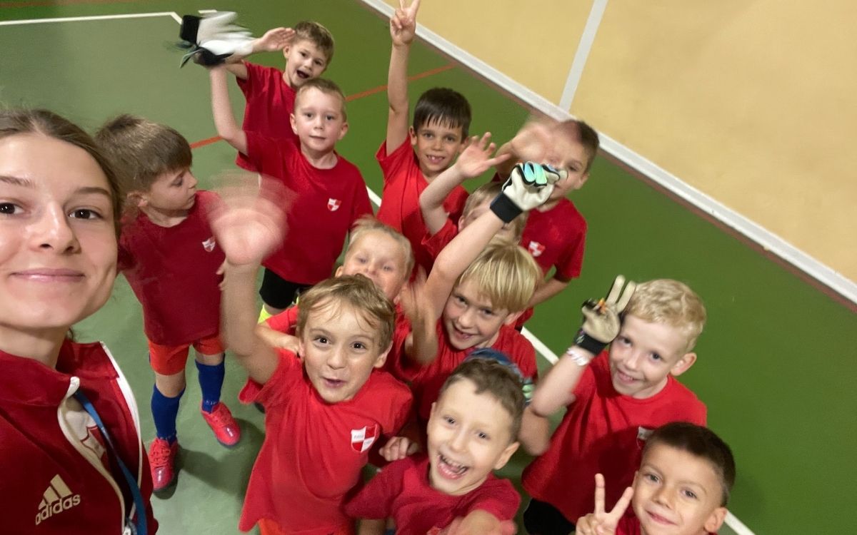 Nie zabrakło też równowagi – w zabawie „most” dzieci ćwiczyły spokój, precyzję i kontrolę nad ciałem. A na koniec – nasze tradycyjne „bombardowanie”! To ulubiona część zajęć, bo daje radość, emocje i mnóstwo śmiechu. Starsi chłopcy zakończyli trening krótkimi meczami.